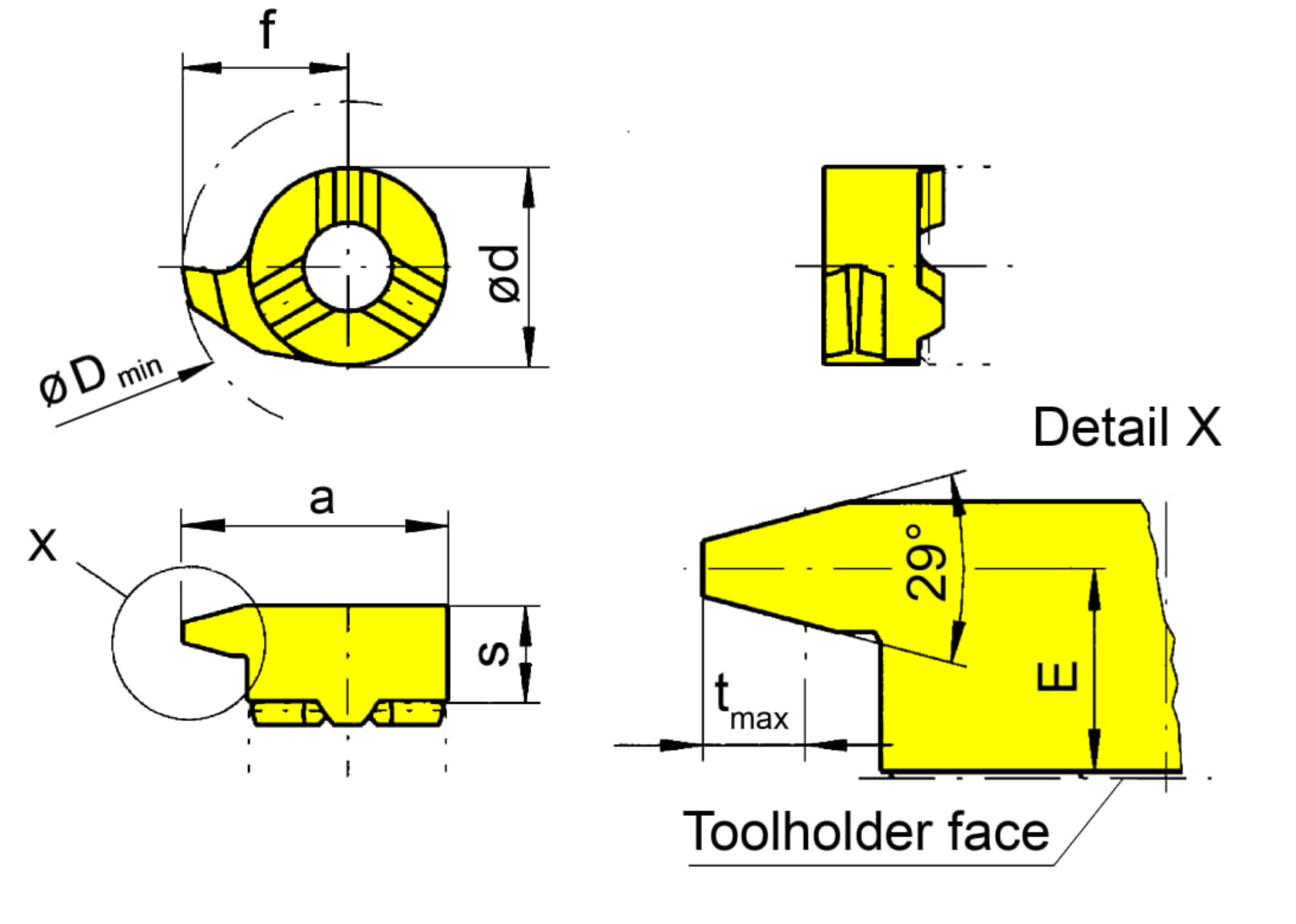 Cutting insert height, Cutting insert thickness (s)