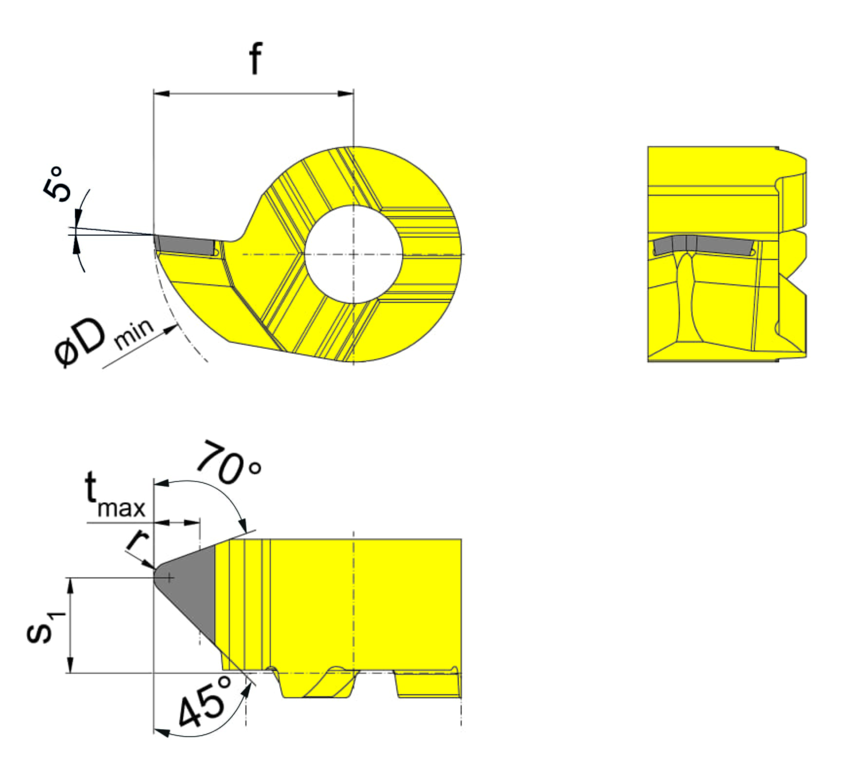 Cutting insert thickness to cutting edge, setting length to cutting edge (s)