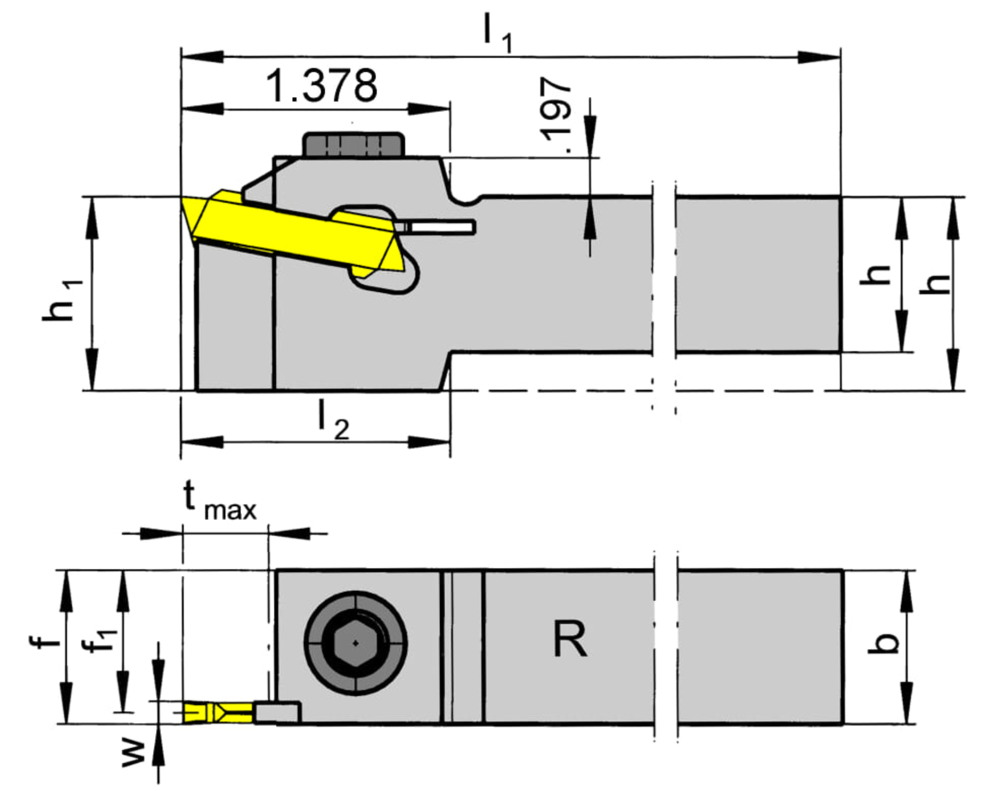 Total length (including cutting insert) (l1)