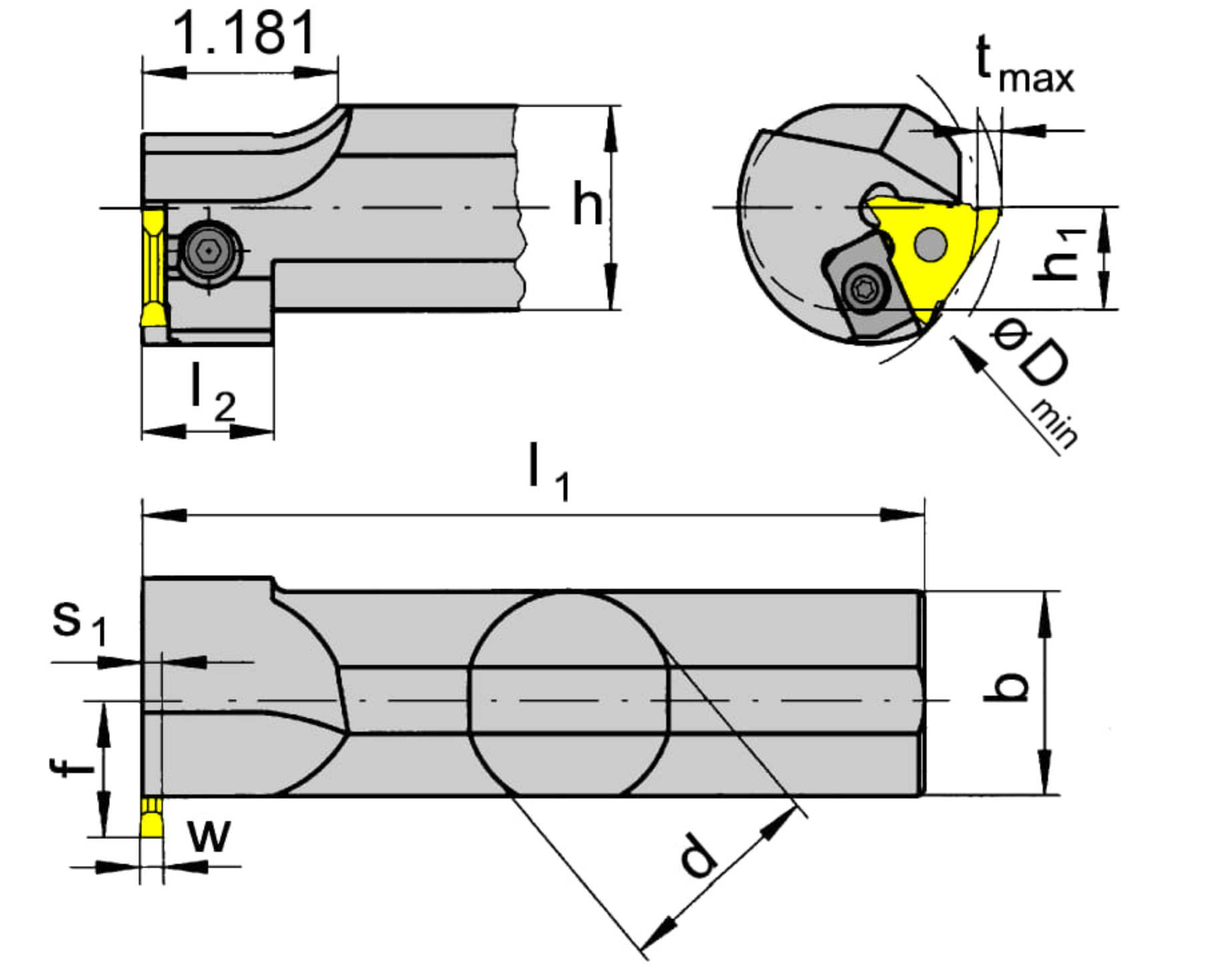 Total length (including cutting insert) (l1)